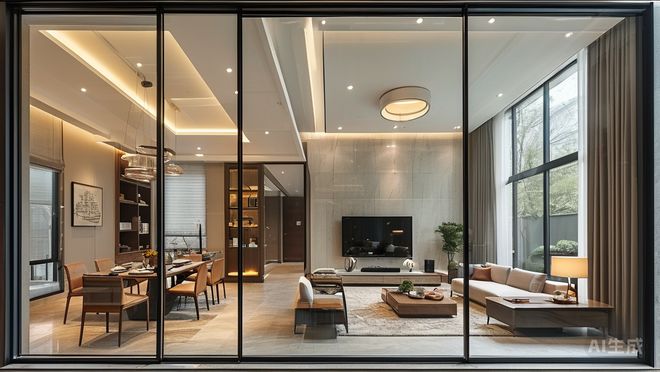 说到萃屿原墅最引人注目的地方之一,莫过于其独具特色的建筑设计了。项目的立面采用了大面积玻璃、金属线条以及威斯康白石材相结合的方式,将现代简约风格与传统海派元素完美融合在一起。特别是那些香槟色的金属线条,就像是给建筑物穿上了一件剪裁合体的高级西装一样,勾勒出流畅而优雅的轮廓线。这种设计风格不仅提升了整体视觉效果,也赋予了建筑更多的层次感和立体感。
