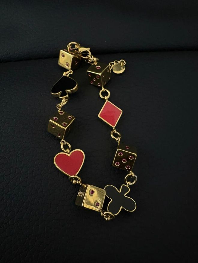 黑红梅方「珐琅工艺」,链长23cm可调,锆钻镶嵌,骰子点数为彩色锆钻,金属钛钢材质,表层金属电镀,精雕抛光,赚钱不交朋友!