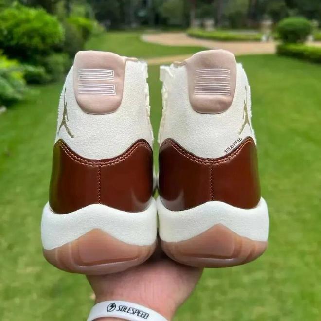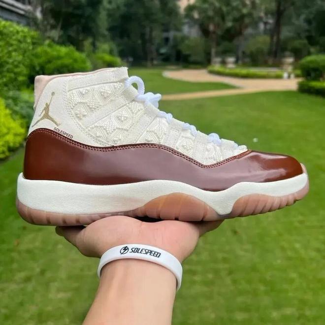 说回十五,这双AJ11中国限定确实看点满满,鞋面整体采用棕色皮革和米白麂皮打造,在鞋带位置饰有致敬中国传统民间艺术的珠管刺绣装饰。